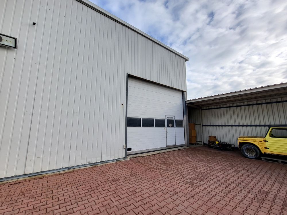 Die Halle mit ca. 100 m² ist voll unterkellert. Eine Montagegrube (ca. 2 m x 3 m), eine Kranvorrichtung sowie eine Lagerbühne sind vorhanden. Aktuell wird die Halle mit einem Holzofen geheizt, es besteht alternativ aber auch ein Anschluss an die Zentralheizung.