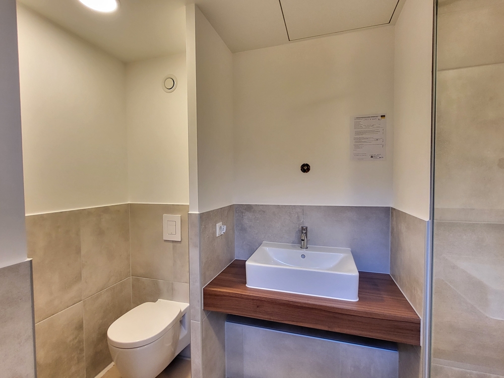 Eine WC-Anlage mit Dusche gehört zum Mietangebot.