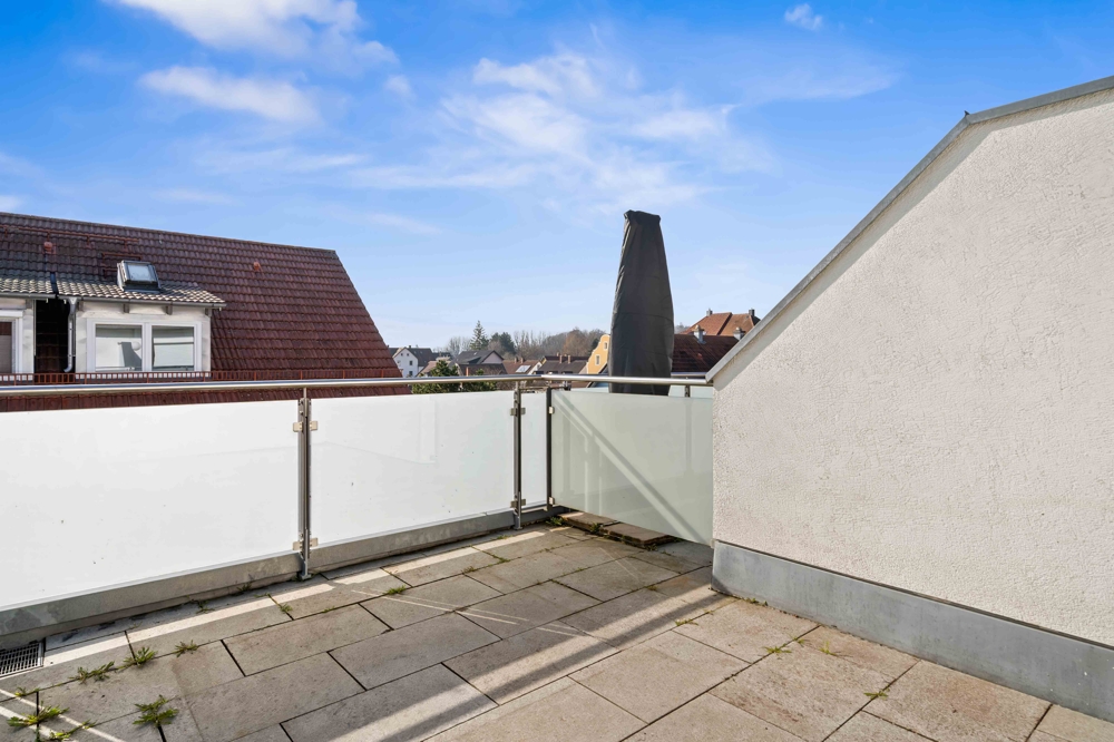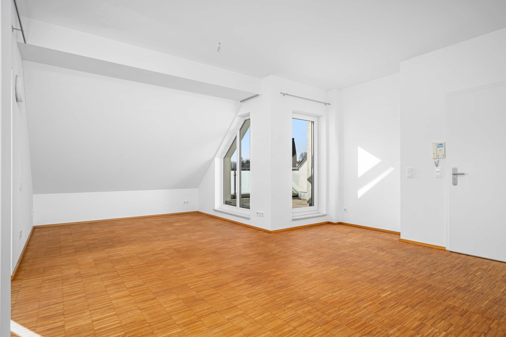 Sie befindet sich im Dachgeschoss eines 2013 erbauten Mehrfamilienhauses.