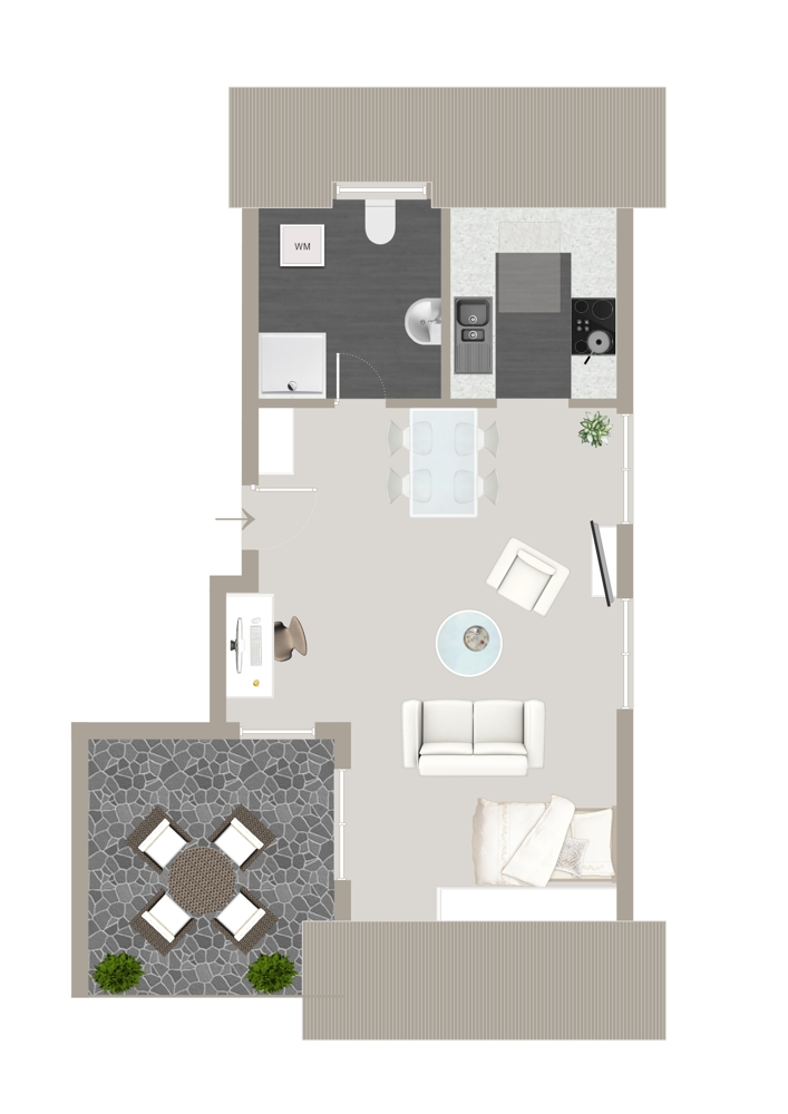 Das Herzstück ist der Wohn- und Schlafbereich mit Zugang zum großen Balkon in perfekter Ausrichtung.