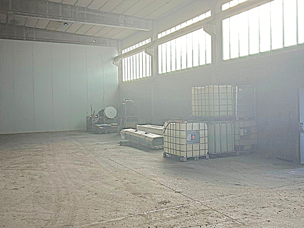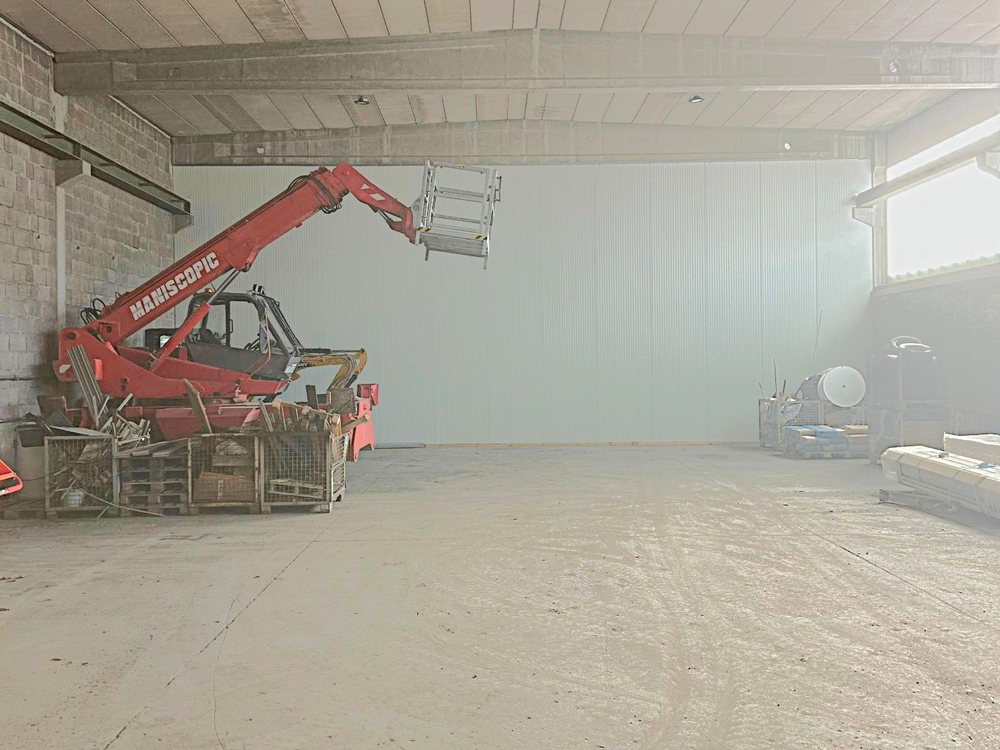Die Halle, mit einer Höhe von ca. 6 Metern, kann über ein elektrisches Sektionaltor angedient und befahren werden.