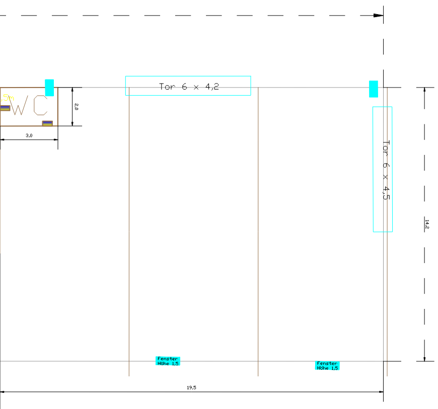 Die isolierte Halle verfügt über ca. 300 m² Bruttogrundfläche und kann über zwei ca. 4,2 m x 6 m große Sektionaltore ebenerdig angedient werden. Die Hallenhöhe beträgt ca. 6 bis 6,50 Meter.