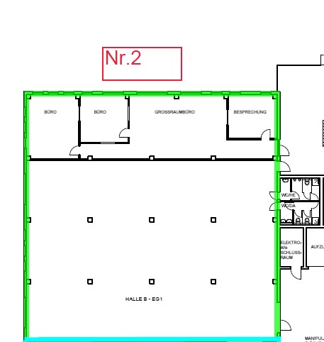 Die gut geschnittene Produktions-/Lagerhalle mit viel Tageslicht, befindet sich im Erdgeschoss und ist über eine LKW-Rampe andienbar. Sie ist für vielerlei Zwecke, z.B. Produktion, Montage, Versandlager bestens geeignet.